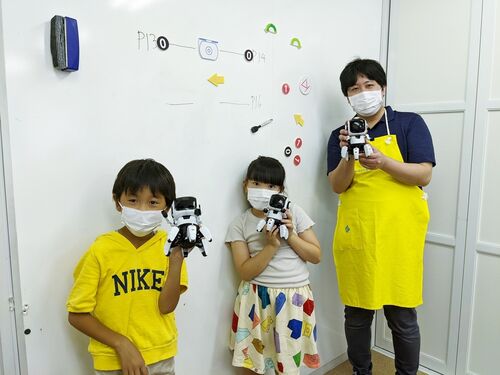 「こうしたらいいのかな...?」とトライ&エラーをくり返しながら一生懸命プログラミングしている様子にほっこりです(-☌ᴗ⚬-)