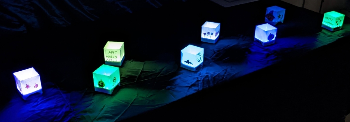 たくさんのランタンが揃うと、とってもキレイですね!10月ということで、ハロウィンデザインのランタンをいっぱい作ってくれました(-☌ᴗ⚬-)